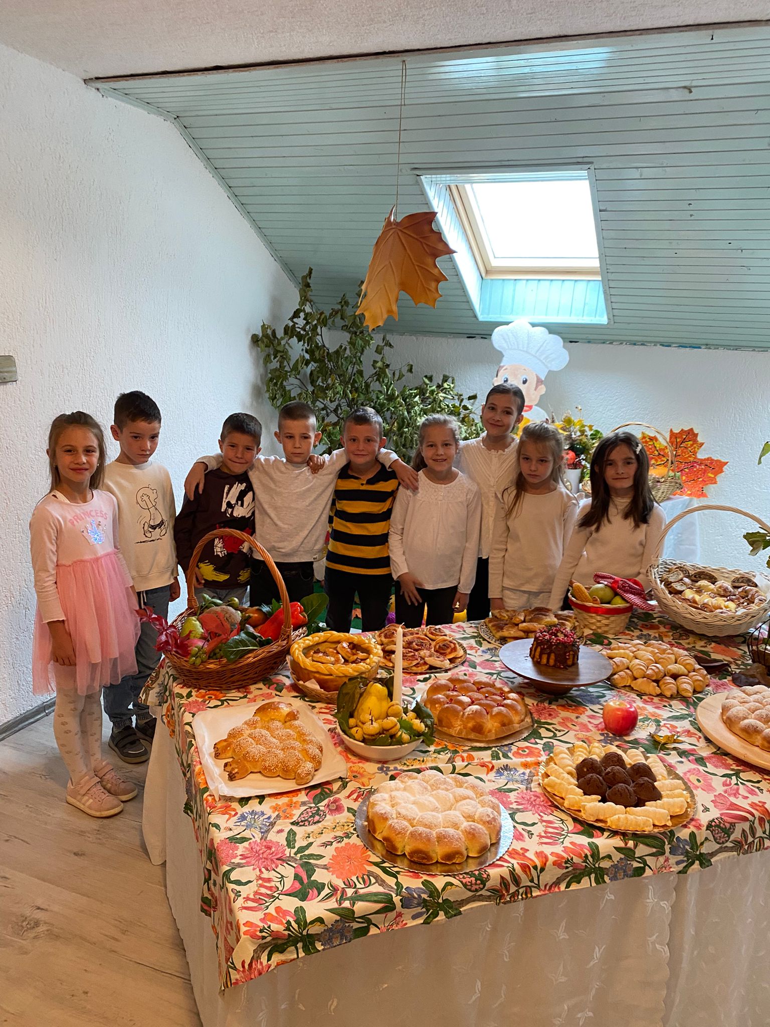 Od ranog jutra školskim prostorijama širio se miris svježe pečenih peciva, kolača, kiflica i drugih domaćih delicija koje su s mnogo truda i ljubavi pripremili učenici zajedno sa svojim roditeljima. Stolovi su bili ukrašeni šarenim košarama s plodovima jeseni, što je cijelom događaju dalo poseban ugođaj topline, zajedništva i zahvalnosti.