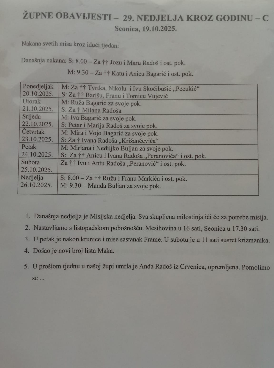 Župne obavijestiŽupne obavijesti – 29. nedjelja kroz godinuadmin3 days ago200 viewsŽupne obavijesti i svete mise Vaš tim crvenice.com Podijeli ovaj članak